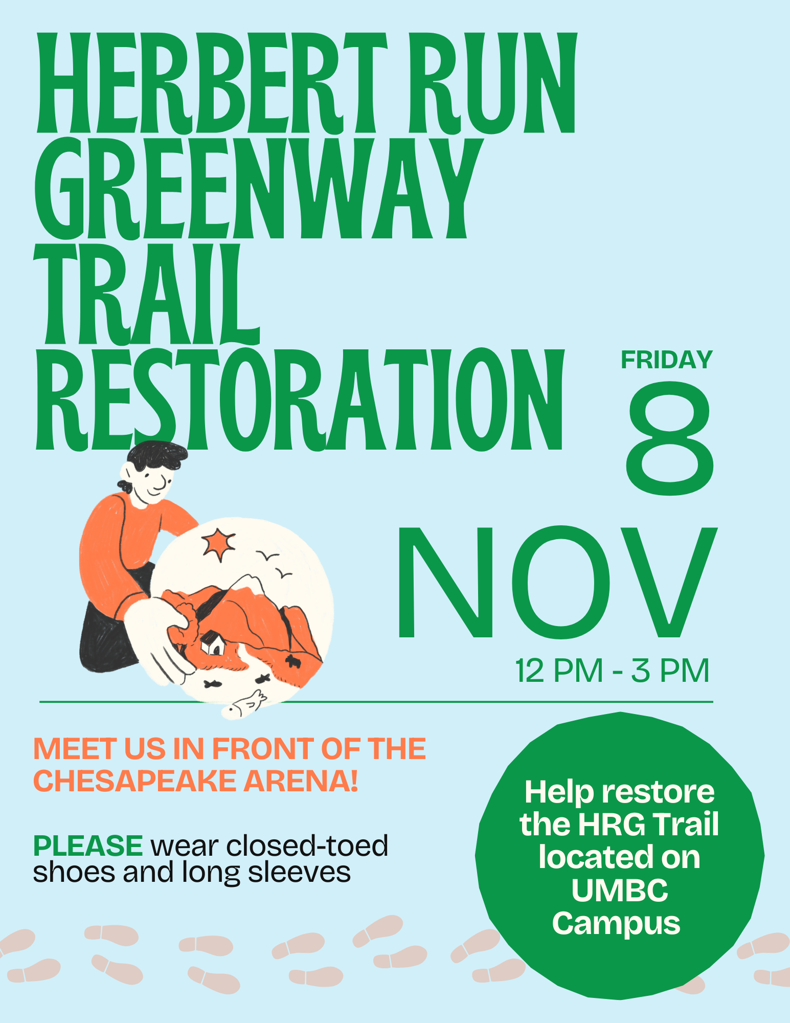 Join the Eco-Ambassador's and The Office of Sustainability in our mission to share the Herbert Run Greenway, UMBC's on campus hiking trail, with the rest of campus!