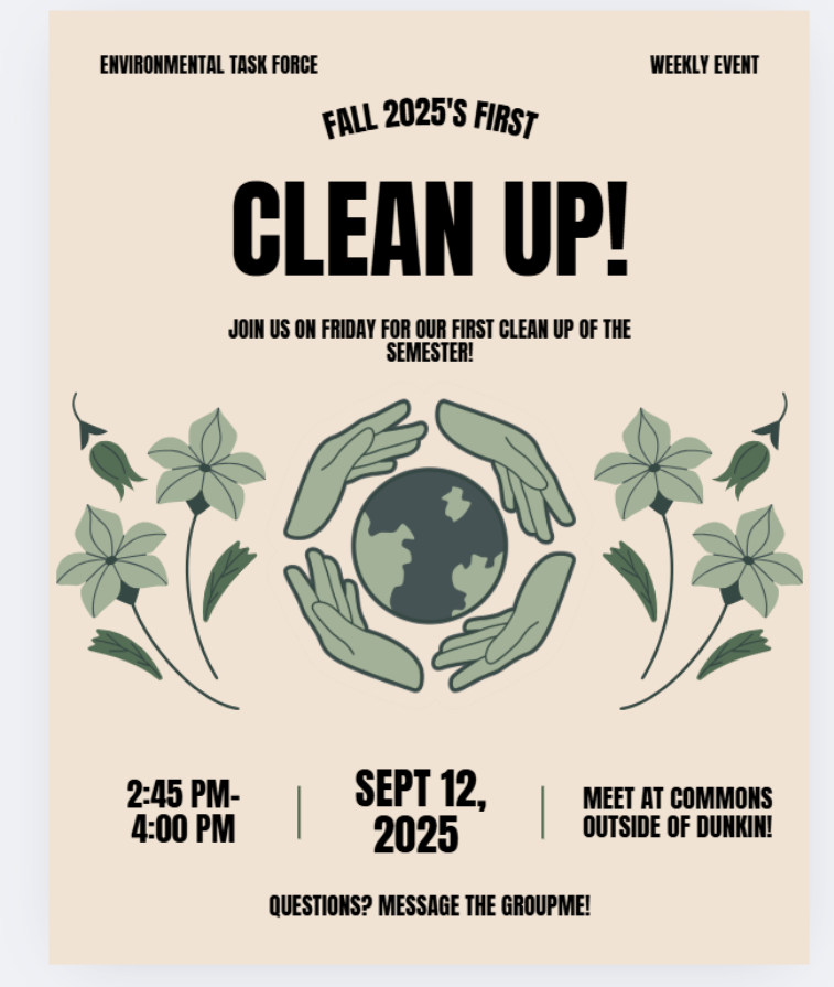 September 12th, 2025 is our first cleanup of the semester, and we'll be picking up by the Hillside Apartments. Veterans know that those woods get... gross, to put it lightly.